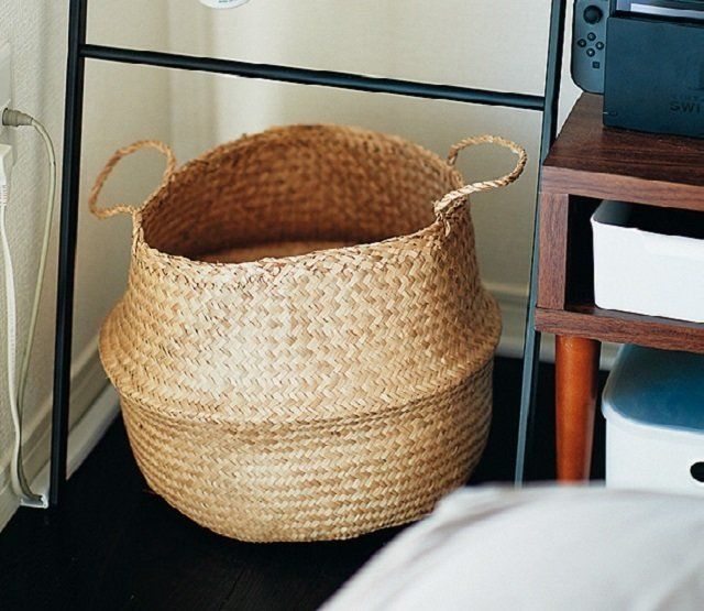 「家族の脱ぎっ放しのパジャマや遊びかけのおもちゃは、取りあえずリビングの隅のイケアのバスケットに突っ込みます。深くて中が見えにくいから安心」。どんな場所にもなじむデザイン。