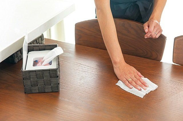 台拭きは使う前にぬらしてしぼるのが手間だし、清潔に保つために煮沸消毒するのも面倒。使い捨てのウエットシートならサッと拭けるし、卓上にイヤなニオイも残りません。