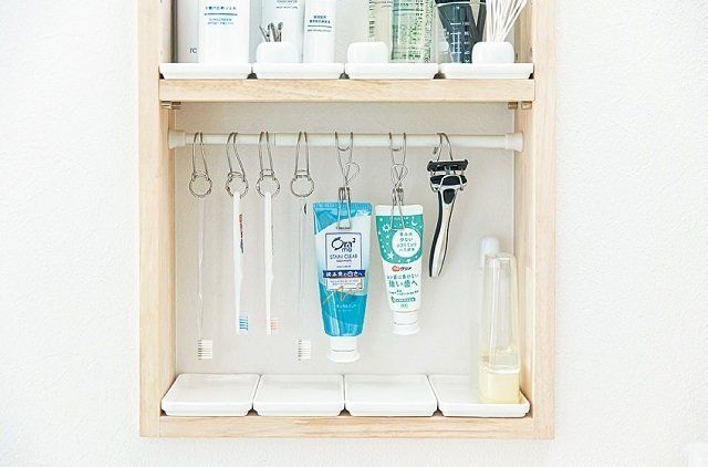 スタンドに立てておくと、ぬめりやカビが気になるし掃除も面倒。歯ブラシの持ち手の穴にリングをつけてつるしてみたら、掃除はラクだし、歯ブラシの乾きも早くて衛生的!