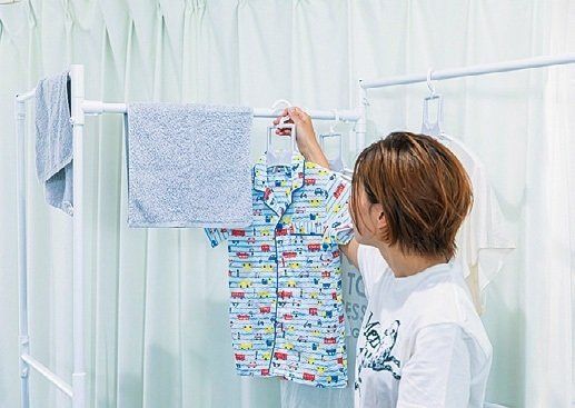ドタバタする朝は洗濯したり干したりが大変!夜干してみたら、室内でもちゃんと乾くし、日中、時間があるときにたたんでしまうことができて、グッとラクになりました。