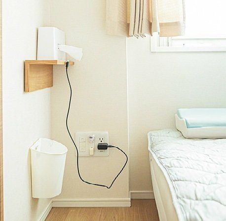 掃除機がけは、朝の片づけのあとにサクッとすませたい。でもゴミ箱が床置きしてあったり、各種コードが床をはったりしていると、いちいちどかすのが面倒。「何が何でも床に接地させない覚悟で(笑)、小物は浮かせる収納にしています」