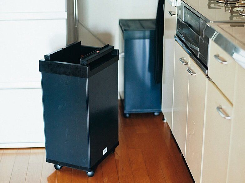 キャスターつきなら、サッと動かして周囲に落ちたゴミが拾えるし、料理をするときは近くに引き寄せて使えるのも便利。「Hailo」の40Lサイズです。