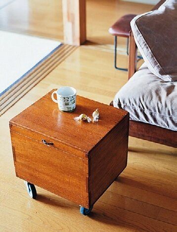 テーブル代わりのBOXにも、キャスターをつけて便利に。