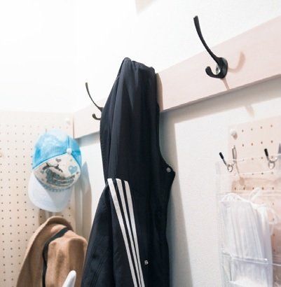 「夫は、服をハンガーに掛けるのが苦手なようだったので、脱いだ上着は、大きめのフックに引っ掛けるだけでよしとしました」。(mamuさん 18年5月号)