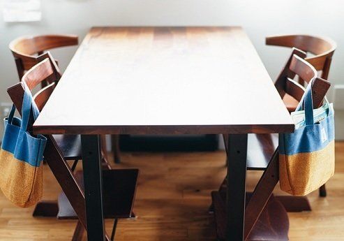 「子どもの本や文房具などは、バッグに入れて片づけを。ダイニングチェアにバッグごと掛ければ、いちいち部屋に運ぶ手間もありません」。(マキさん 18年11月号)