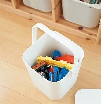 「家のどこでも遊べるように、取っ手つきの小さい箱を用意。お気に入りの物だけ入れているので、片づけもしやすく、散らかりもなし!」。(mizuhoさん 20年1月号)