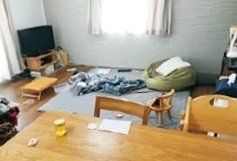 夫、長男(5歳)、長女(2歳)の4人家族。築20年以上のアパート。子どもがハウスダストのアレルギーなので、片づけなきゃと思いながら、どう片づけていいかわからず……。安心して穏やかな気持ちで過ごせる部屋にしたい!