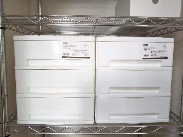押し入れやクローゼットなどの「奥行きのある収納スペース」には、大容量の引き出しを入れるよりも、収納したいものに合ったサイズの引き出しを組み合わせて入れる方がすっきりするそう。奥にはクリスマスツリーなどの使用頻度の低いもの、手前はキャスターつきの収納にすることで、取り出しも簡単になるようです。