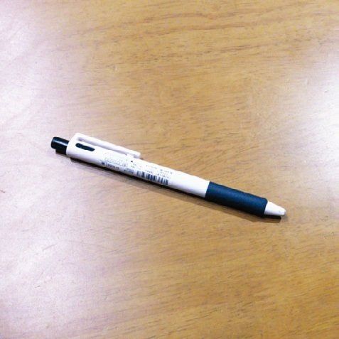 まだなんとかインクが出るからと無理やり使っていたボールペン。いい加減、書きづらくなったので捨てます。