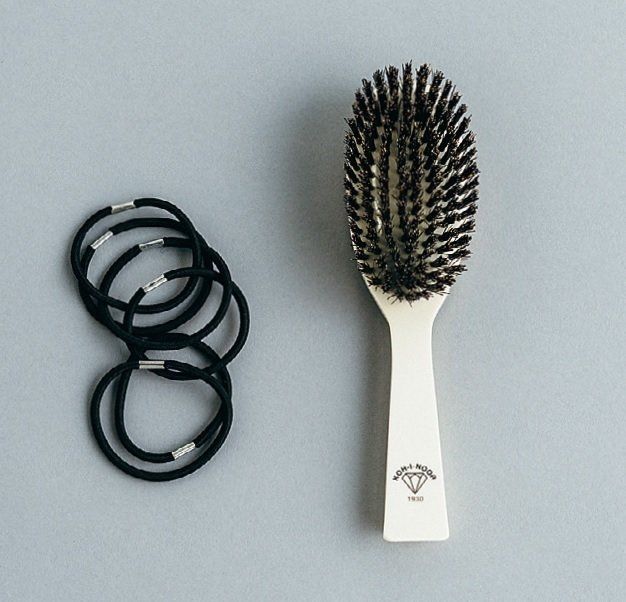 子どもの髪を結ぶ場所がリビングなら、そのとき使うブラシやヘアゴムも近くにしまうと、戻し忘れない。