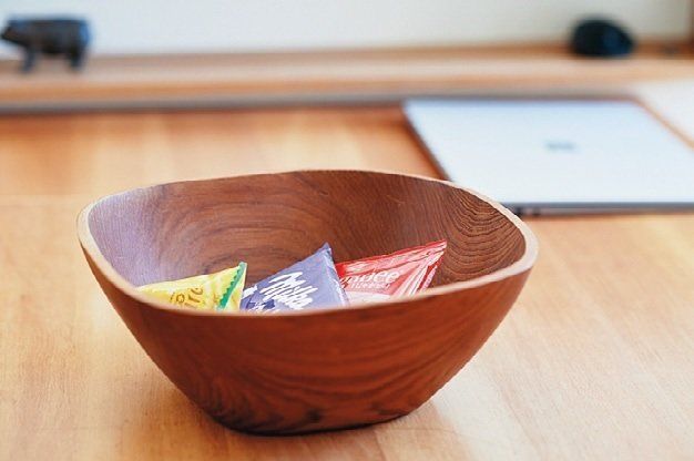 大袋に1袋だけ残った物や、1個だけ人からもらったようなお菓子は、ダイニングテーブルの上の深い木の器に集結。家族が目にするこの場所に置いておけばだれかしら食べるので、忘れ去られる心配は無用。