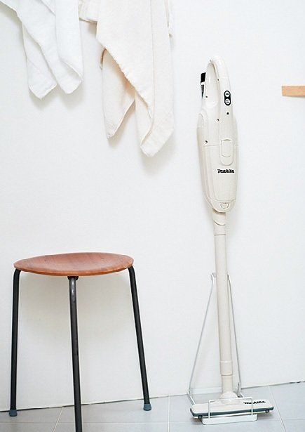 ホコリや髪の毛がたまりやすい洗面所。saoriさん宅では洗面所を掃除機置き場とし、洗面所を使った人が最後、床の掃除機がけをする決まり。すぐ近くにあるとパッと手にとれて便利。