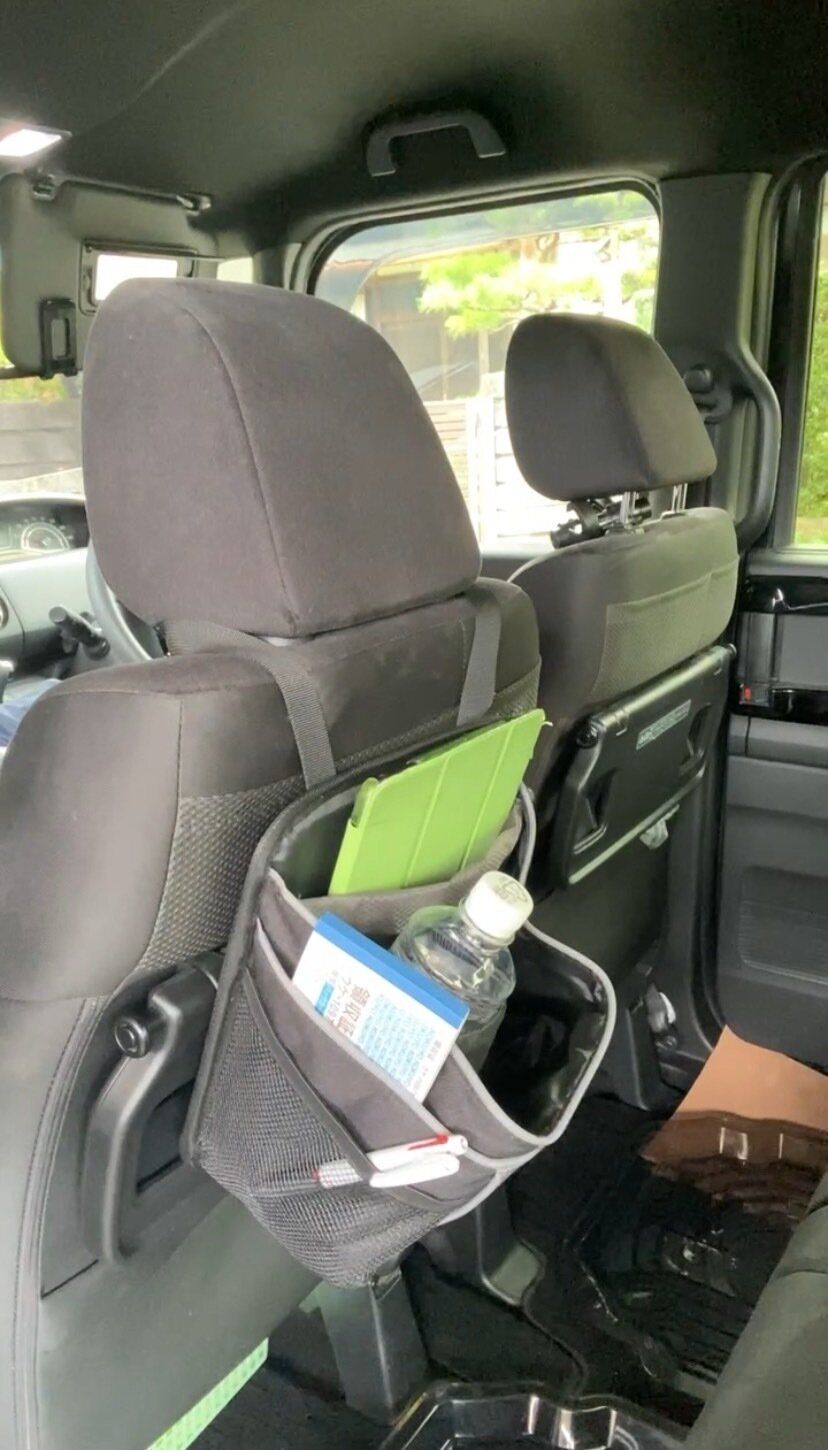 他におすすめなのがヘッドレストに引っ掛けるタイプの収納グッズ。