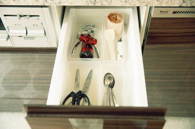 特に引き出しは「詰めるが勝ち」な考えをやめ、「ゆとり」を意識して収納。そうすれば中が見渡せて、取りたい物が秒で取れる。小さい引き出しほど「出すとき」を意識!大事なのは「ゆとり」やな~。