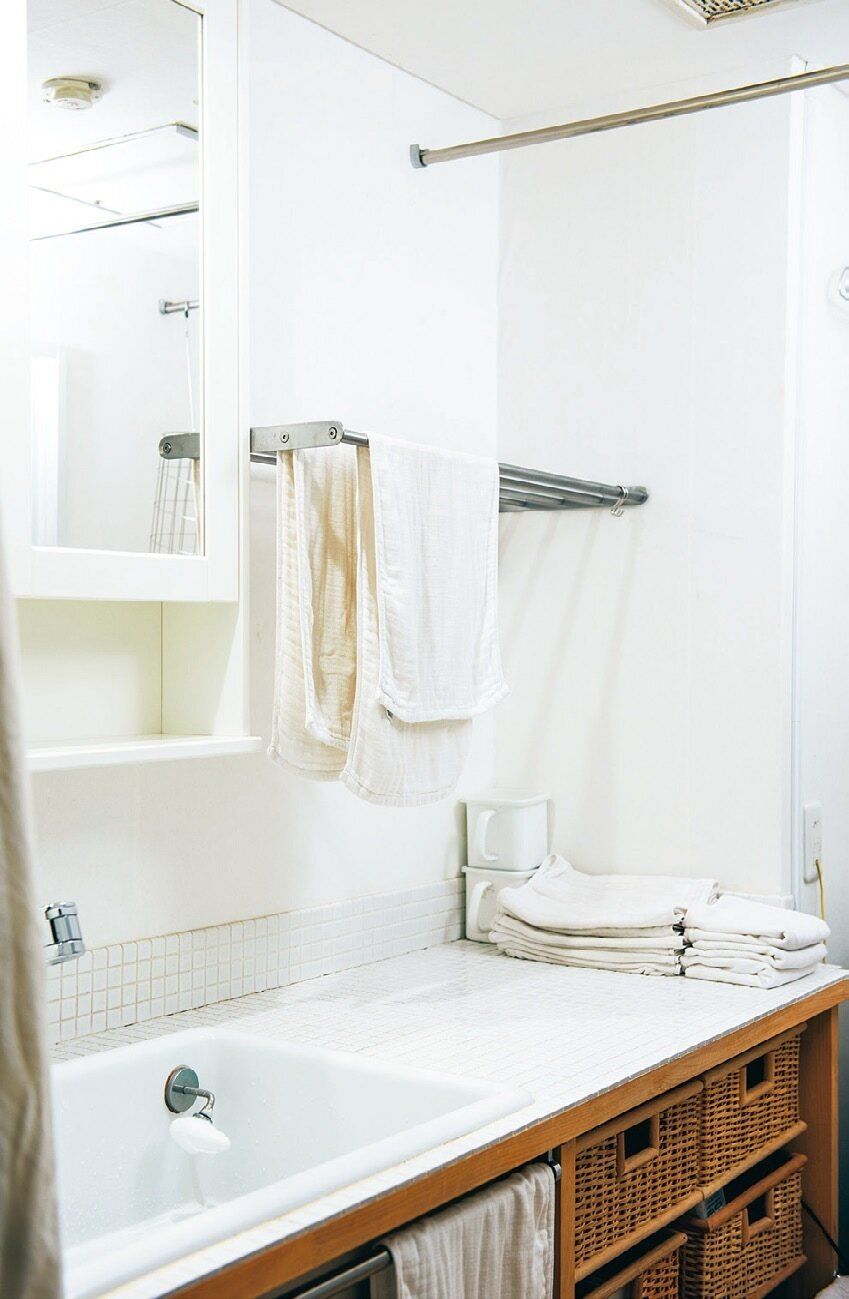 タオルの枚数も少なく&家をより心地よくするためモバイル家具を使いこなす!ミニマリストならではの観点でアイテムを選ぶ尾崎さん。平米数は関係ない、物を減らして狭い家を広く使うコツを教えてもらいました。