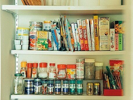 いちばん上の段は飲み物、2段目は粉ものなど、段ごとに置く物を決めれば在庫の把握がラク。「なくなるタイミングが、目で見てわかるのでストックを買う必要がありません」。ダブり買いもなし。