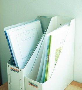 子どもが複数いる家庭は人別に分けておくとゴチャつかず、見返すときもスムーズ。クリアーファイルや薄型ラックで分けると省スペース。