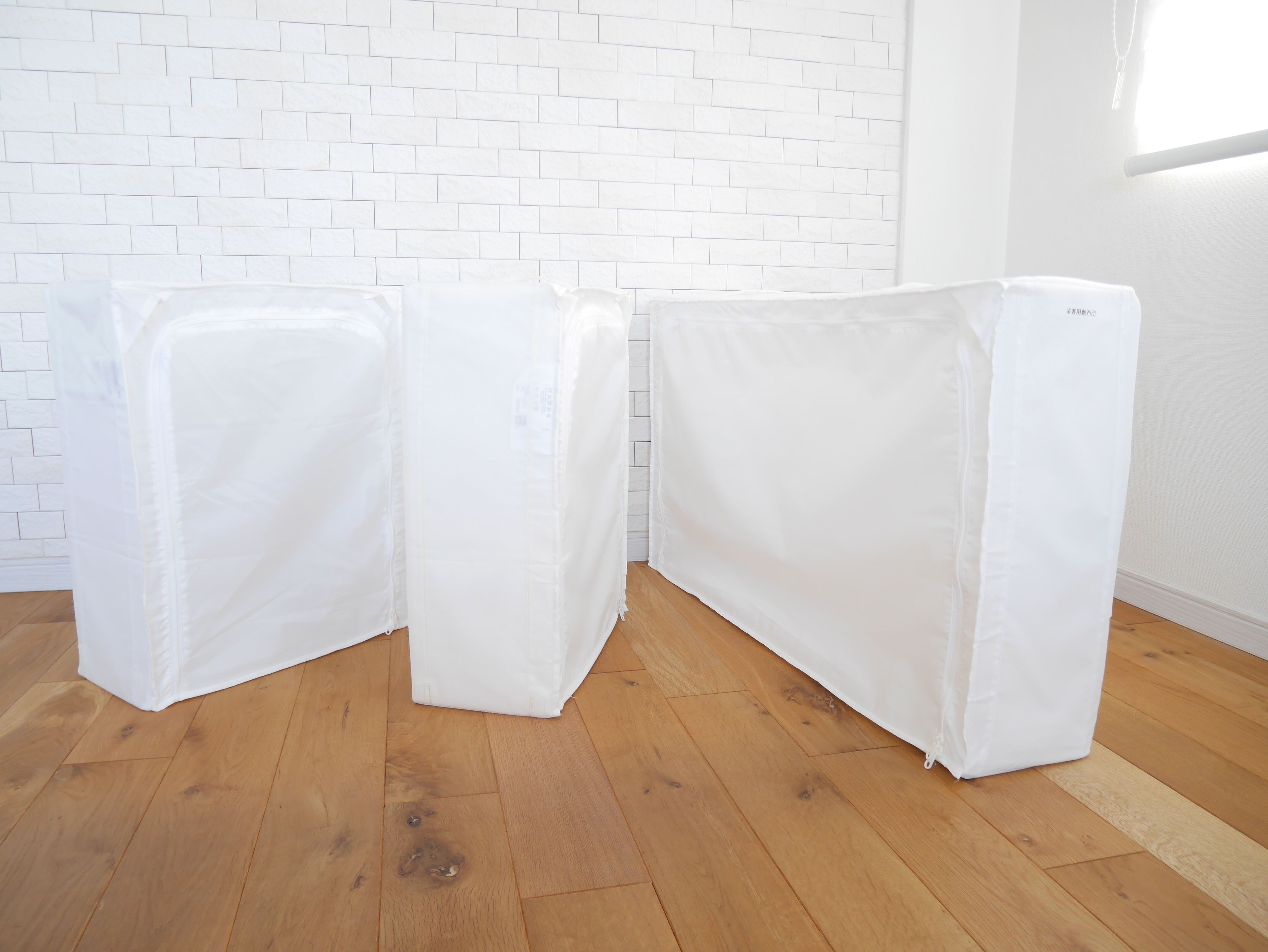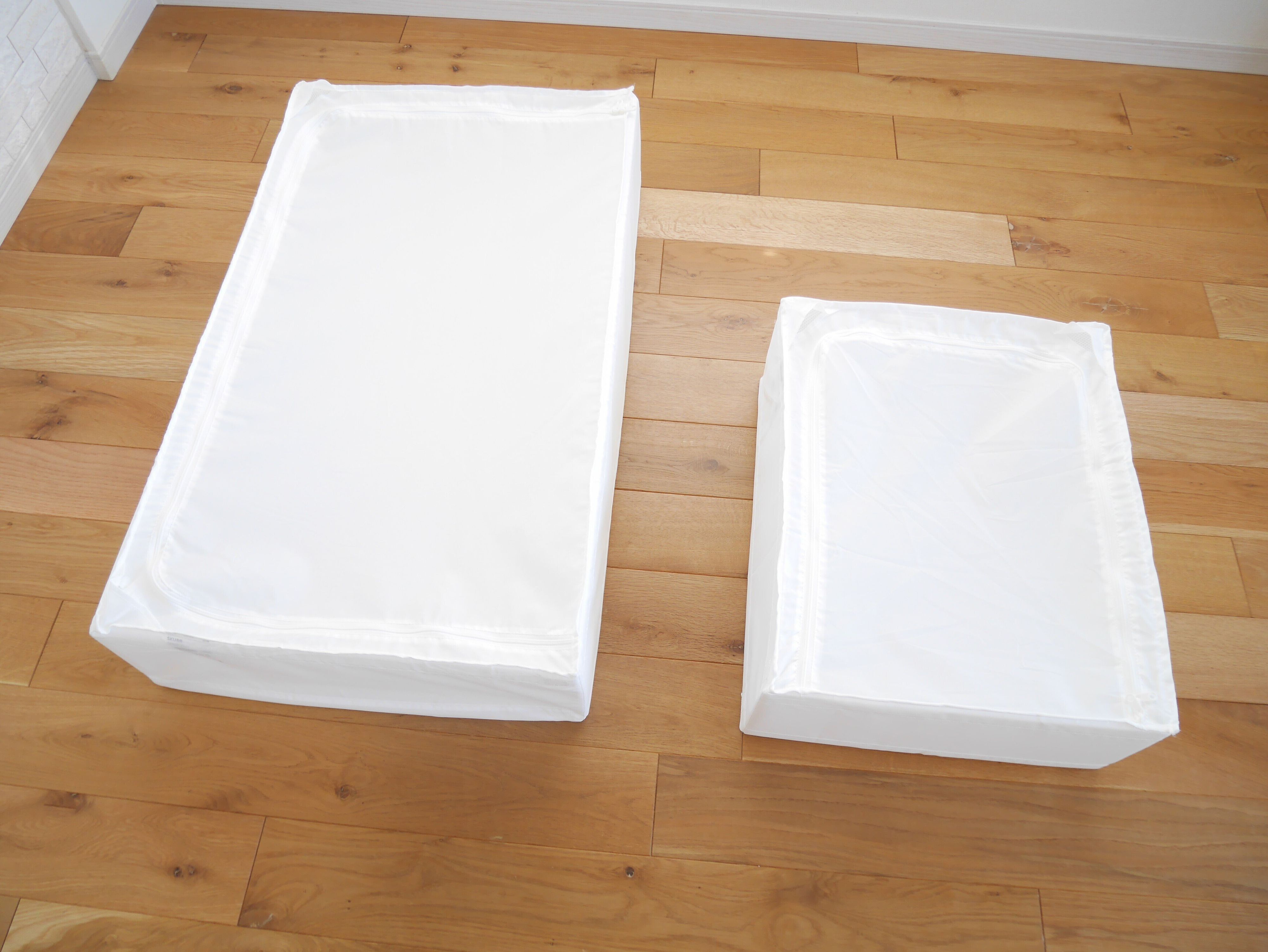《大》の「SKUBB」は、シングルサイズの敷布団を入れることができます。(画像の布団の厚みは7cm。布団の厚みによって異なります。)