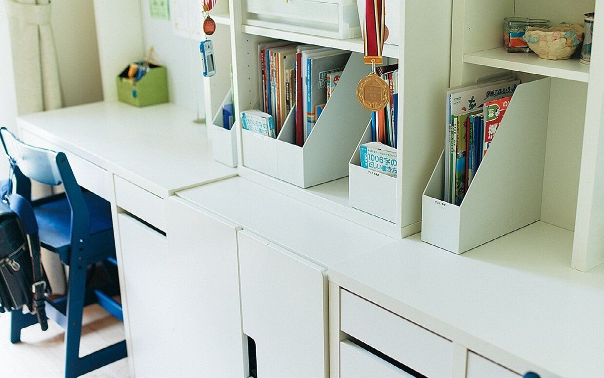 机まわりの物を増やさないように、教科書は前の学年の1年分だけ残して捨てることに。「捨てて困ったことはないですね」。