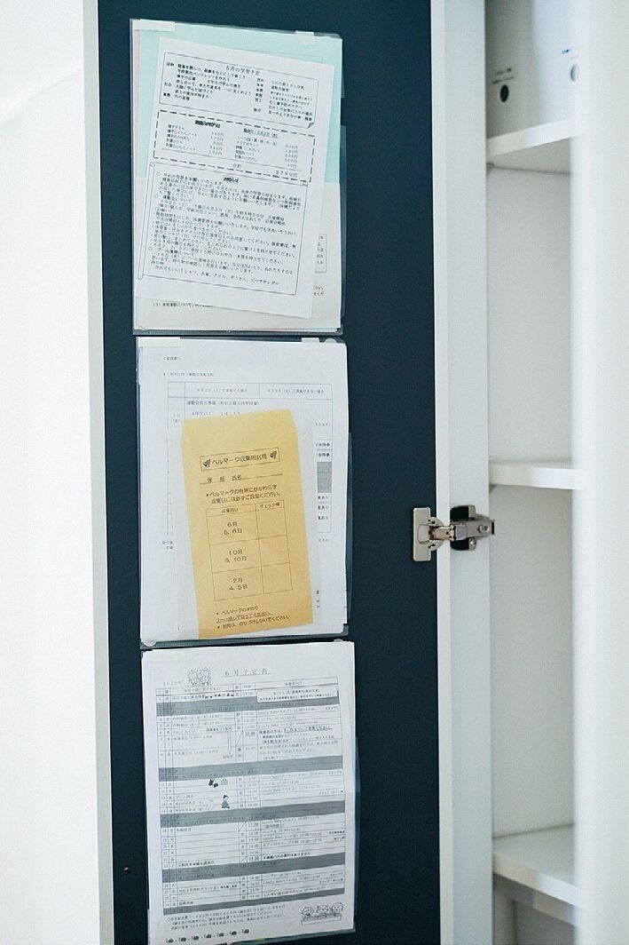学校からのお便りは、1人ずつファイルを分けて収納。あふれたら処分するのを習慣にしたら、必要以上にたまらないし予定の確認漏れもない!
