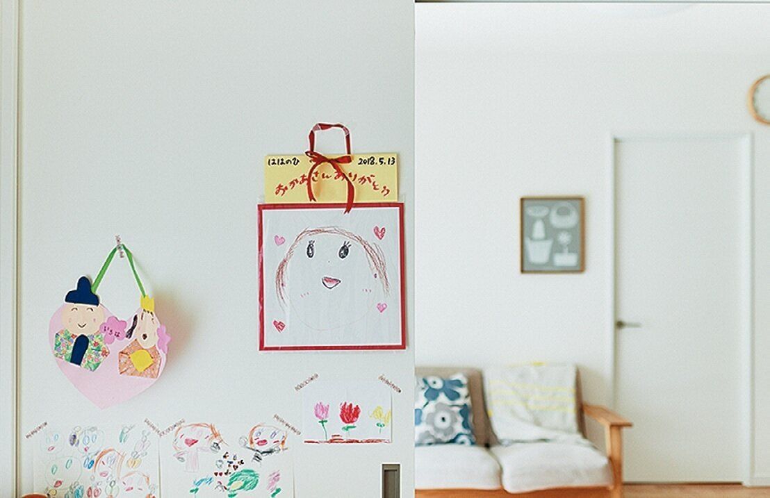 「作品をどこに飾ればインテリアと合うか考えるのって、結構面倒。だから、あえてリビングから見えない場所に飾ることに」。持ち帰るたびに新旧を入れ替えし、お気に入り以外は処分。