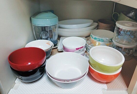 以前は「皿は適当に積んで、いっぱいになったら押し込む」収納でした。でも、夫婦茶碗を割ってしまったことをきっかけに、種類別に重ねるように。あの日から、1枚も割っていません。