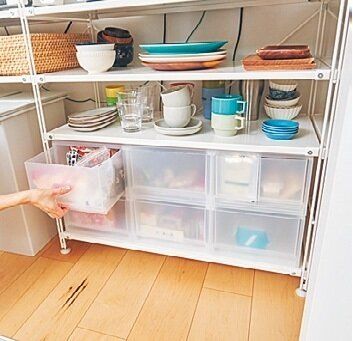 ちかママさん宅で最も活躍している収納グッズがこちら。しっかり深さがあるから中身が見えないし、出し入れがラクなのもうれしい。