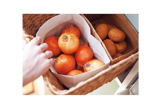 いちいち拭くのが面倒な冷蔵室のポケットにはペーパータイルを敷いておき、汚れたらポイ!土汚れが気になる根菜は、紙袋に入れてからかごに収納。汚れたら新しい紙袋に交換するだけだから気がラクに。