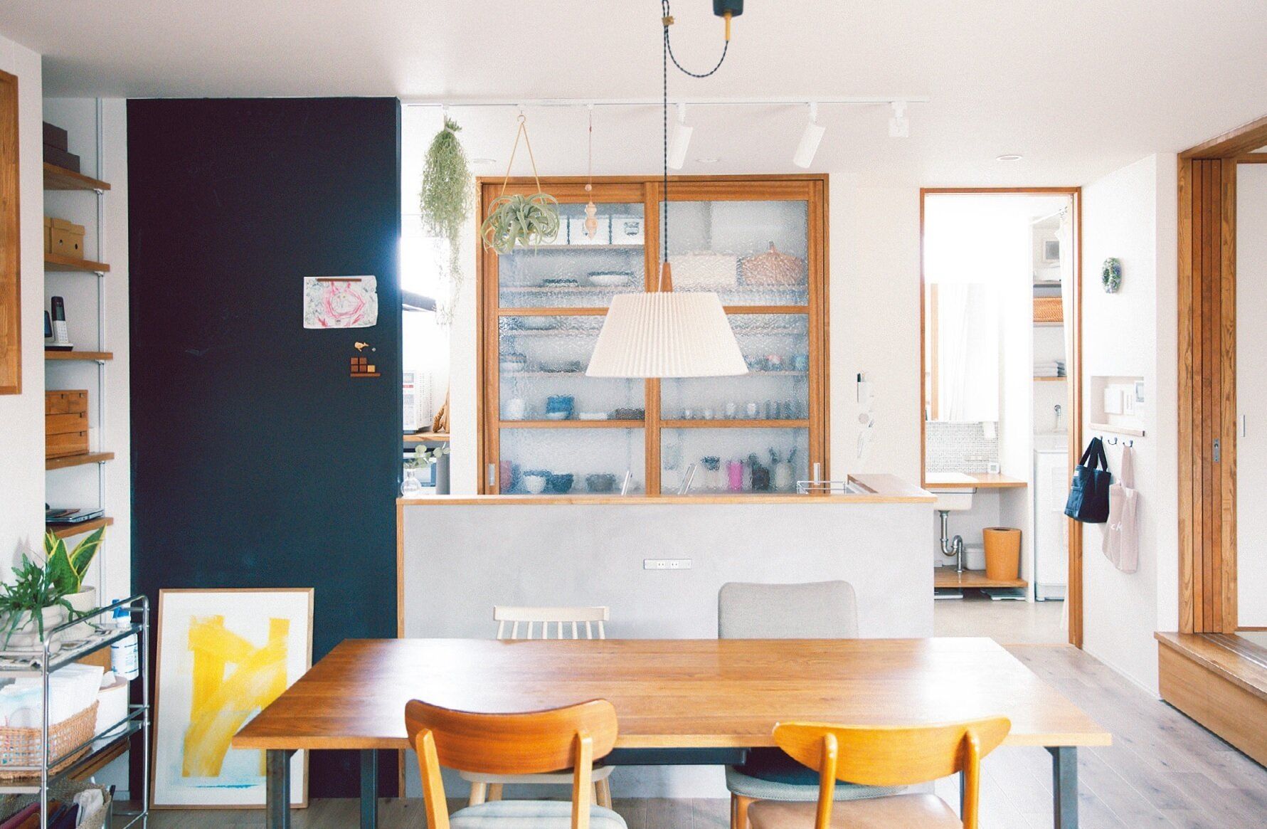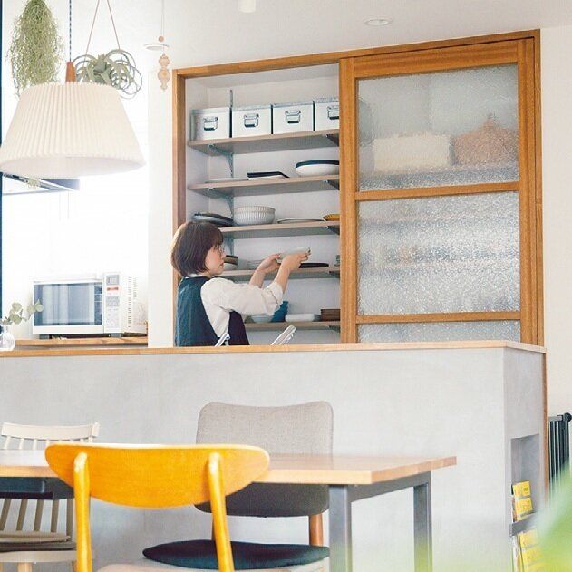 造作してもらった食器棚は、たっぷりスペースがありますが、よく使う食器だけに絞り、ゆとりのある空間に。「いちいち物をどかさずに出し入れできる空間を保っています」。