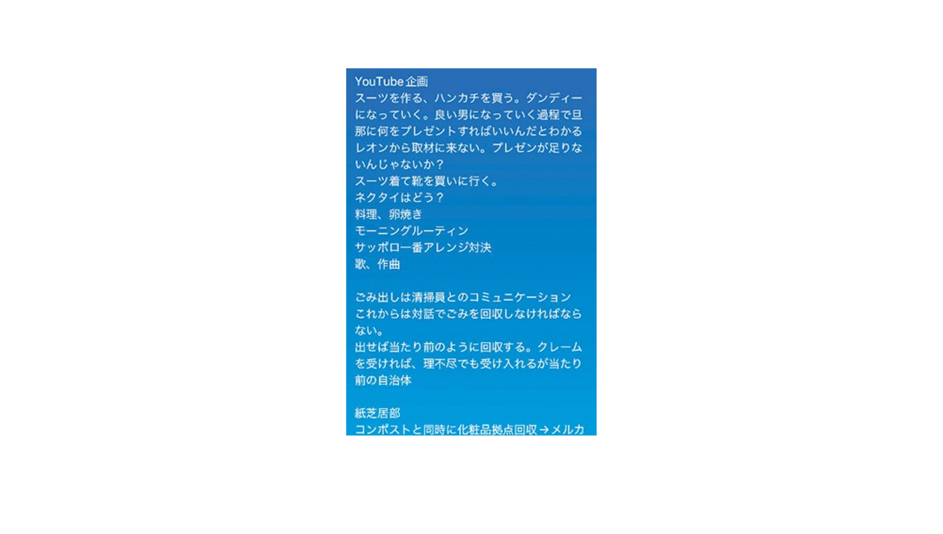 ゴミのことやお笑いのネタなど、いろいろなことをスマホのメモに書き留めているのですが、ほとんど見返すこともなく、たまるばかり。ちゃんと紙に整理して書き出し、データは消したいです。