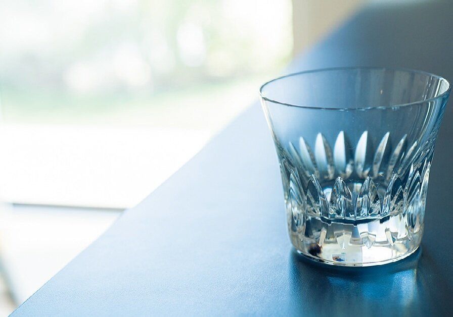 結婚祝いにもらったバカラのグラスで日々、麦茶をごくごく。「貴族の友達が遊びにきたら使うね、なんて言ってたけど、そんな友達いなかった(笑)」。素敵な物こそ普段使い。しまい込んだらもったいない!