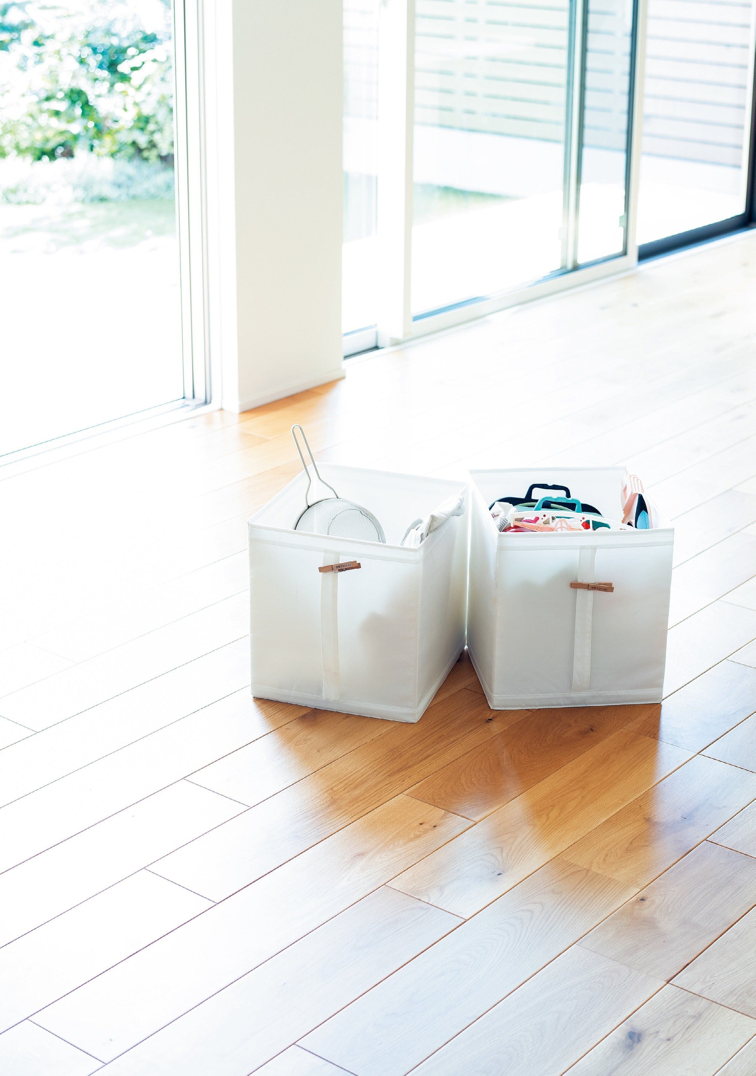 子どもって、使い倒したおもちゃや完成した絵や折り紙にわりと無関心……。「なので放置してる物はしばらく保留BOXに入れ、視界から消します。すると執着せず本人が『もういらない~』と言うことがよくあるんです」。