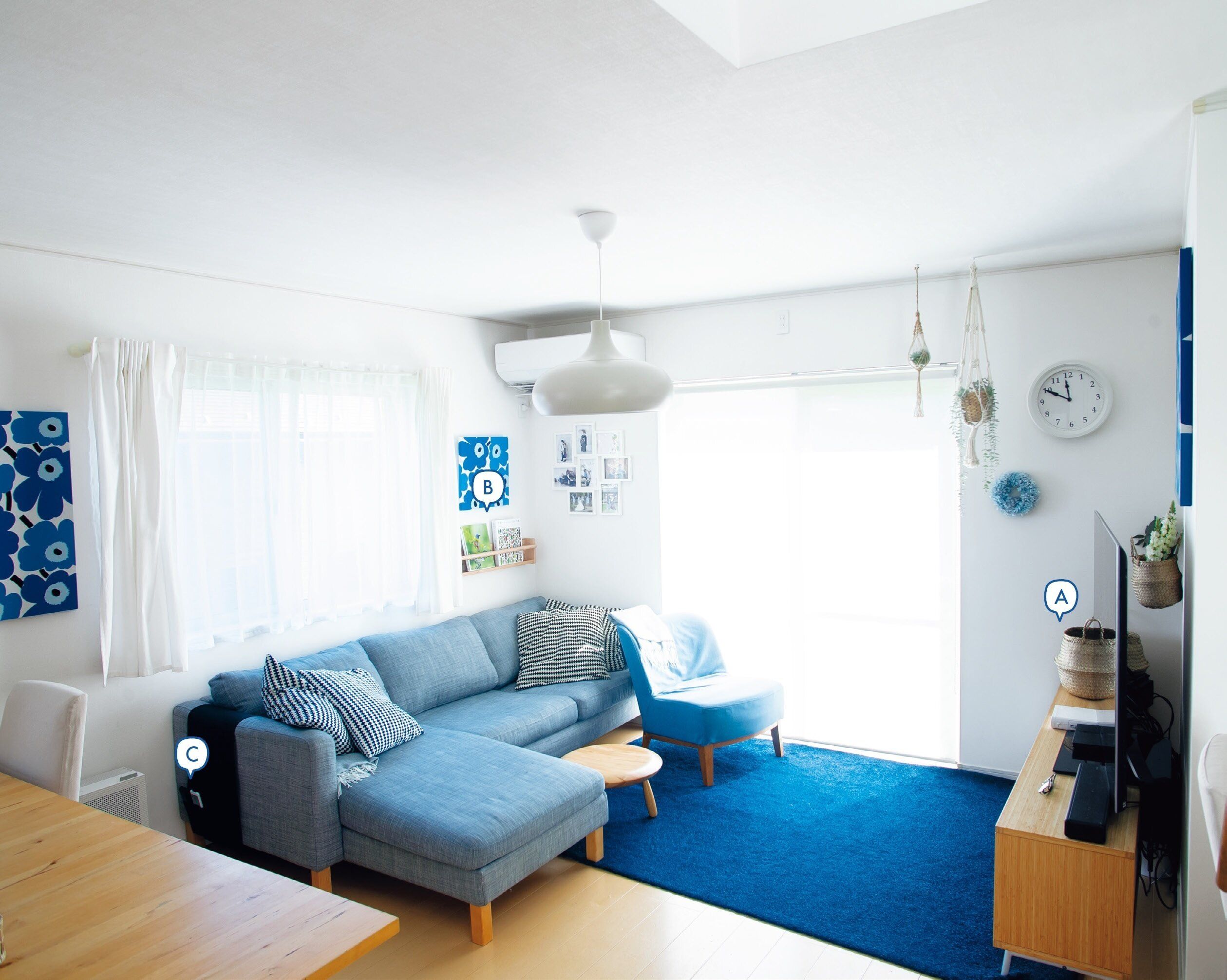 ソファやテレビ台も全てイケア。物が少ないから、片づけもラク。