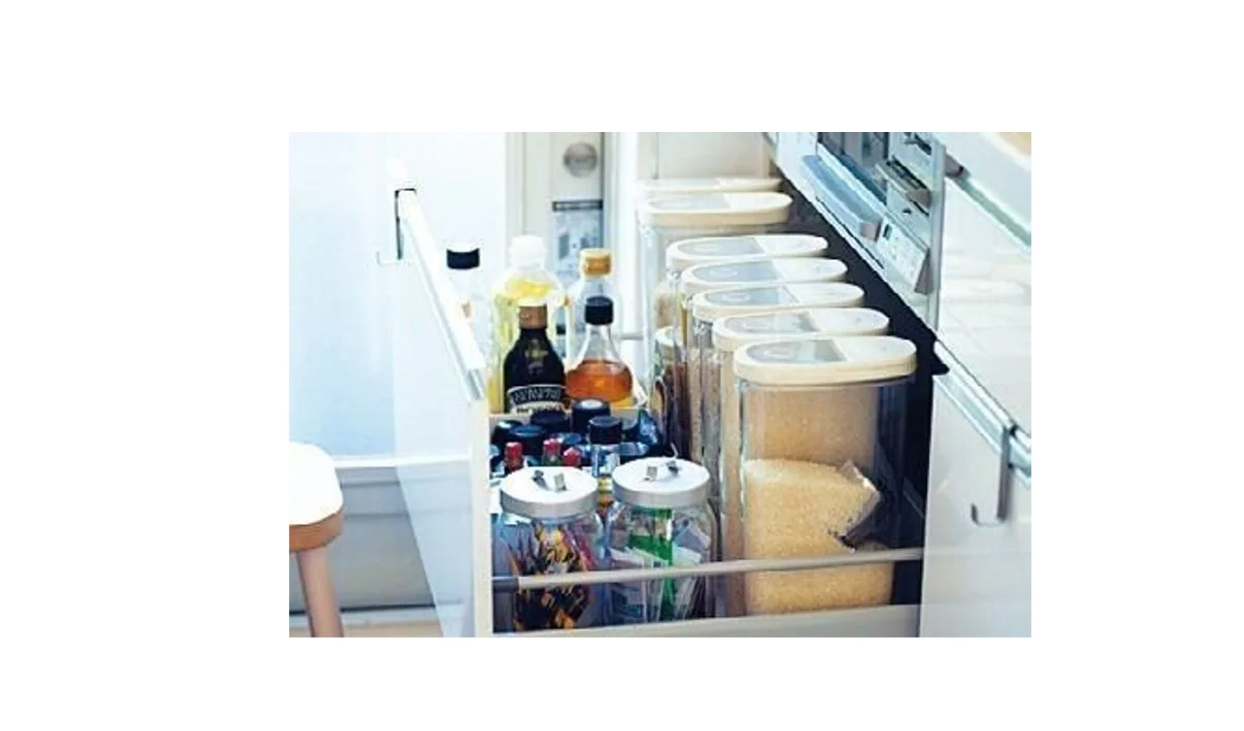 「米やパスタ、シリアルなどの収納に。中身が見えて、片手でさっと出せて便利。10年以上使っています」。
