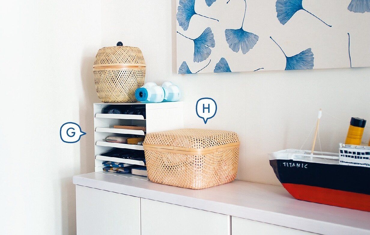 「基本的に北欧ではざっくり“隠す収納”がメイン。片づけ方より、収納するアイテムが重要だと思っています」とフレドリクソンさん。「私は大ざっぱな性格なので収納の中はぐちゃぐちゃですが、シンプルでデザイン性の高いイケアの収納ならそれを上手に隠せます。“出し入れのしやすさ”も考えて選んでいるので、参考にしてください」。