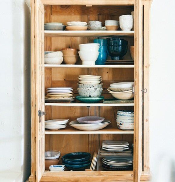 色がバラバラな食器類は扉付きの棚にしまう!