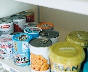 トマト缶など、定番の缶詰が今全部で何個あるのかひと目でわかるように、前から並べて奥は空けて。「これで母の“まだストックがあるのにまた買ってきちゃったよ…”問題が解消!」。