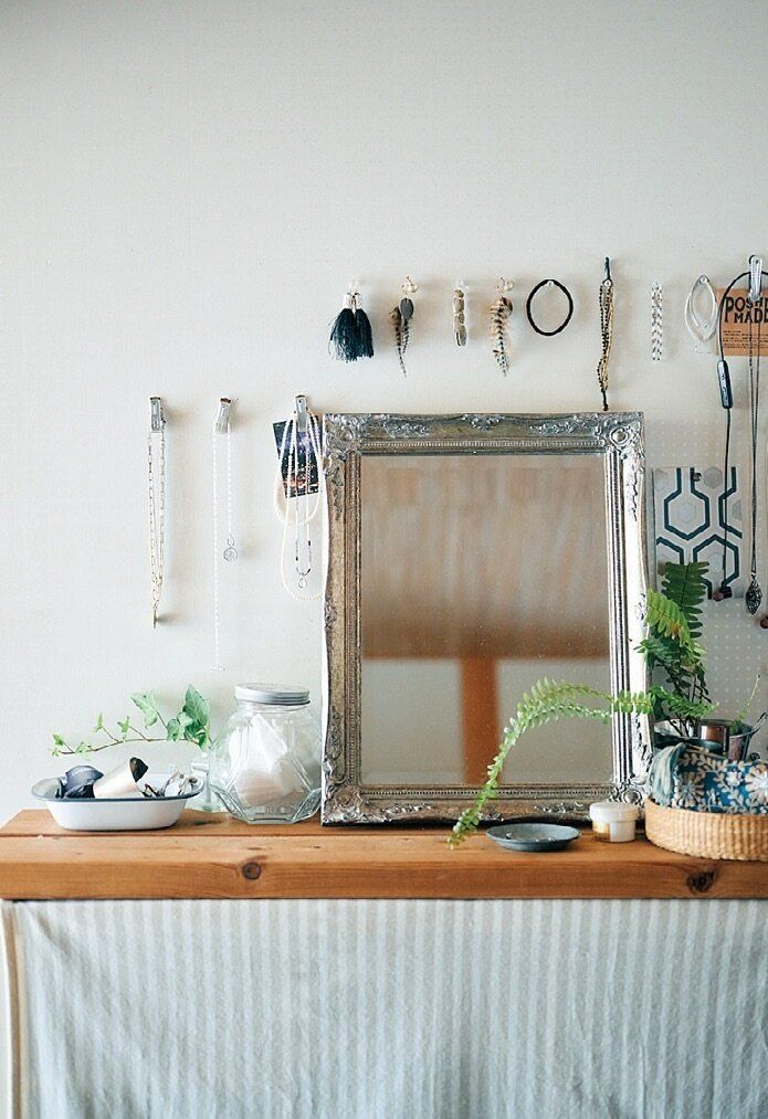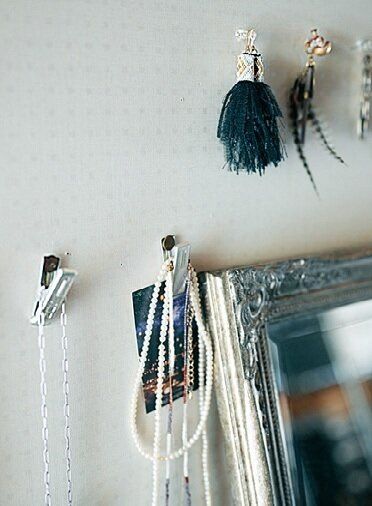 専用ケースを買っても、その中で絡まったり散らかったりしがちなアクセ類。「画びょうとピンチで壁面収納、だけでよくないですか?ってかこれ最高ですよ」。