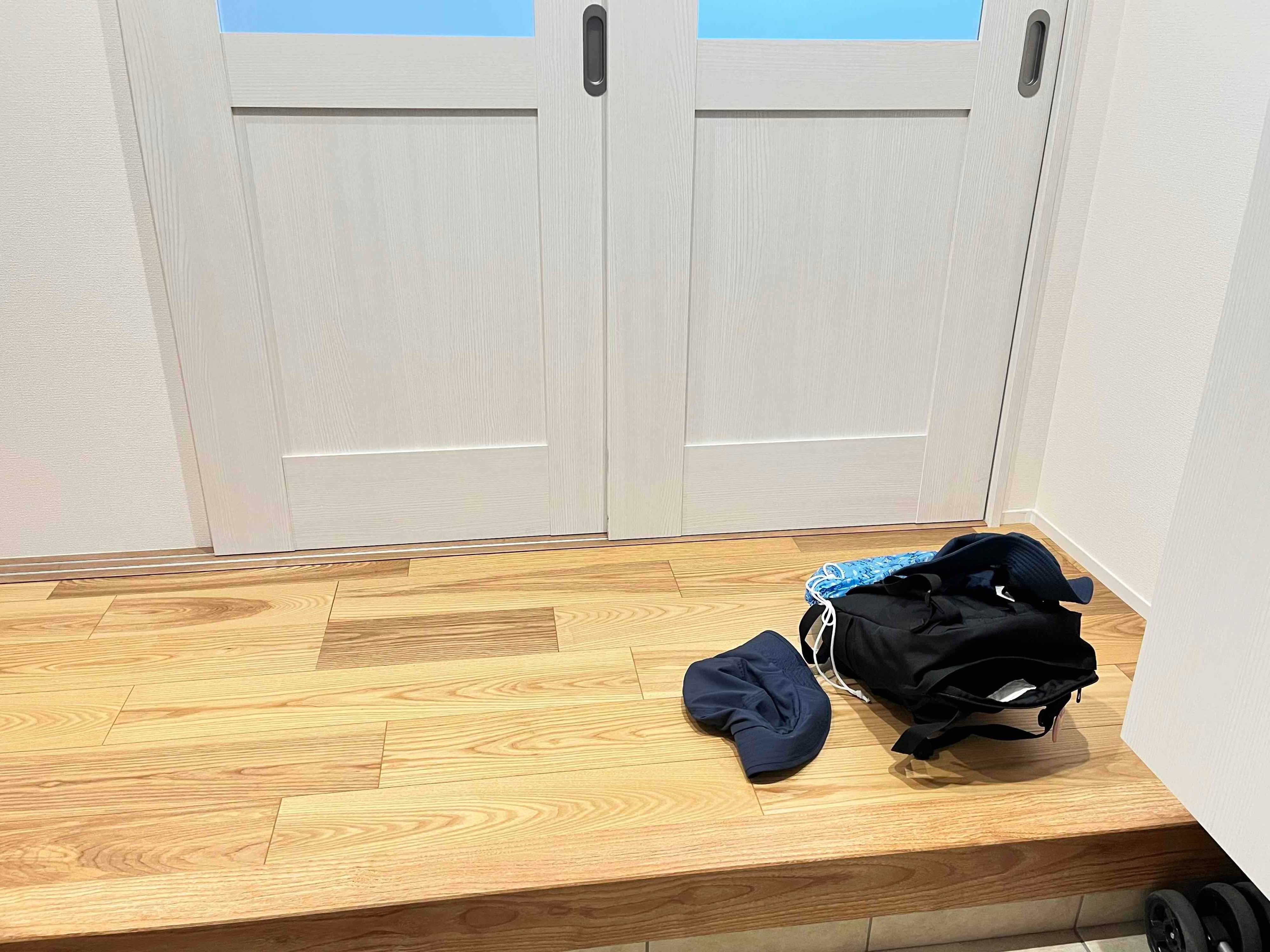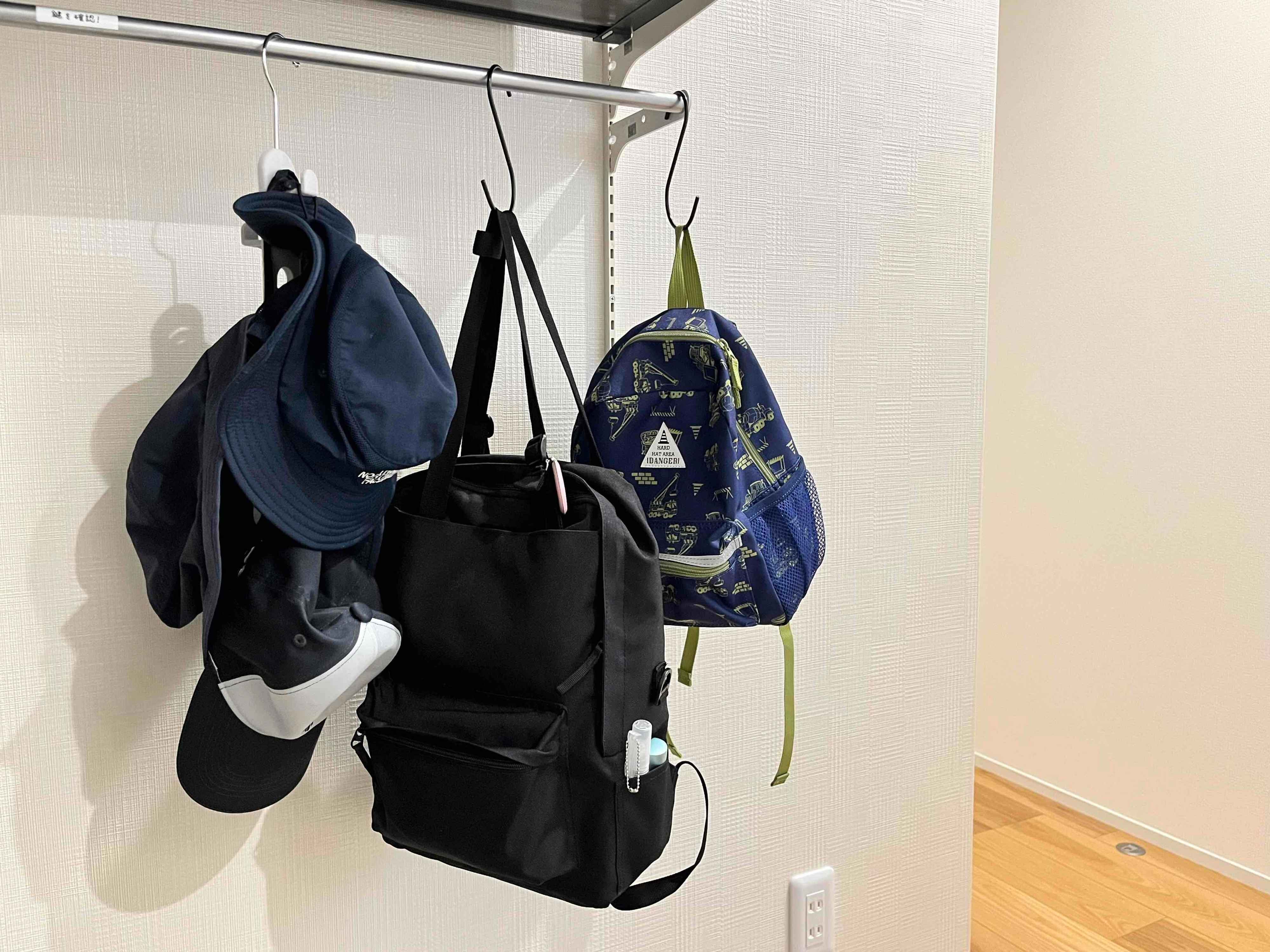 玄関にちょい置きしがちだったのが、おでかけのときに持って行った帽子やかばん、子どもの持ち物等でした。お出かけから帰ってくると、疲れて片付けたくなくなり、そのまま玄関に置いたままにしてしまうことが多々ありました。