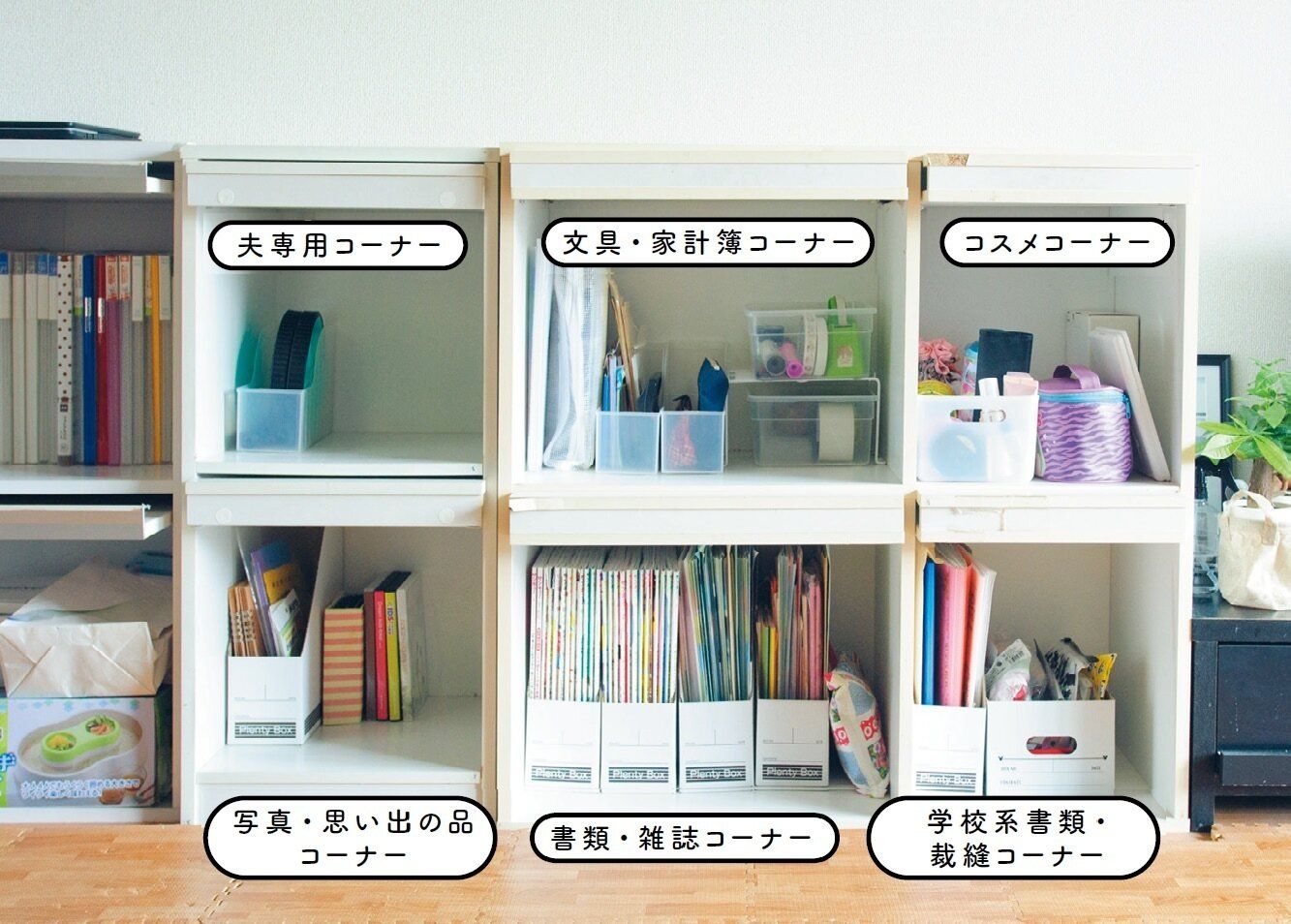 - 夫専用コーナーをつくって棚上置きゼロに