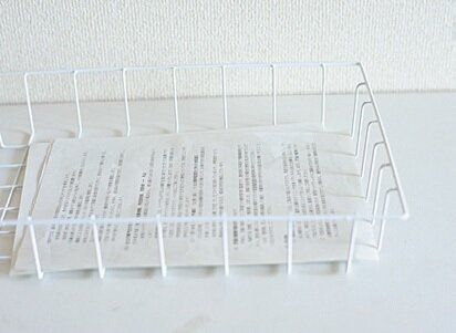 子どもが持ち帰ったプリントやチラシ類は、浅めのワイヤーケースに。その日のうちに確認して、ためない仕組みに。