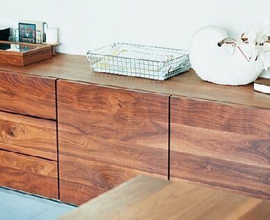 ソファでゴロゴロする夫が何でもポイッとその辺に置いてしまうので、すぐ手の届く所に使う物をすべて集結させました。「出しっ放し・使いっ放しのイライラからも解放されました」。