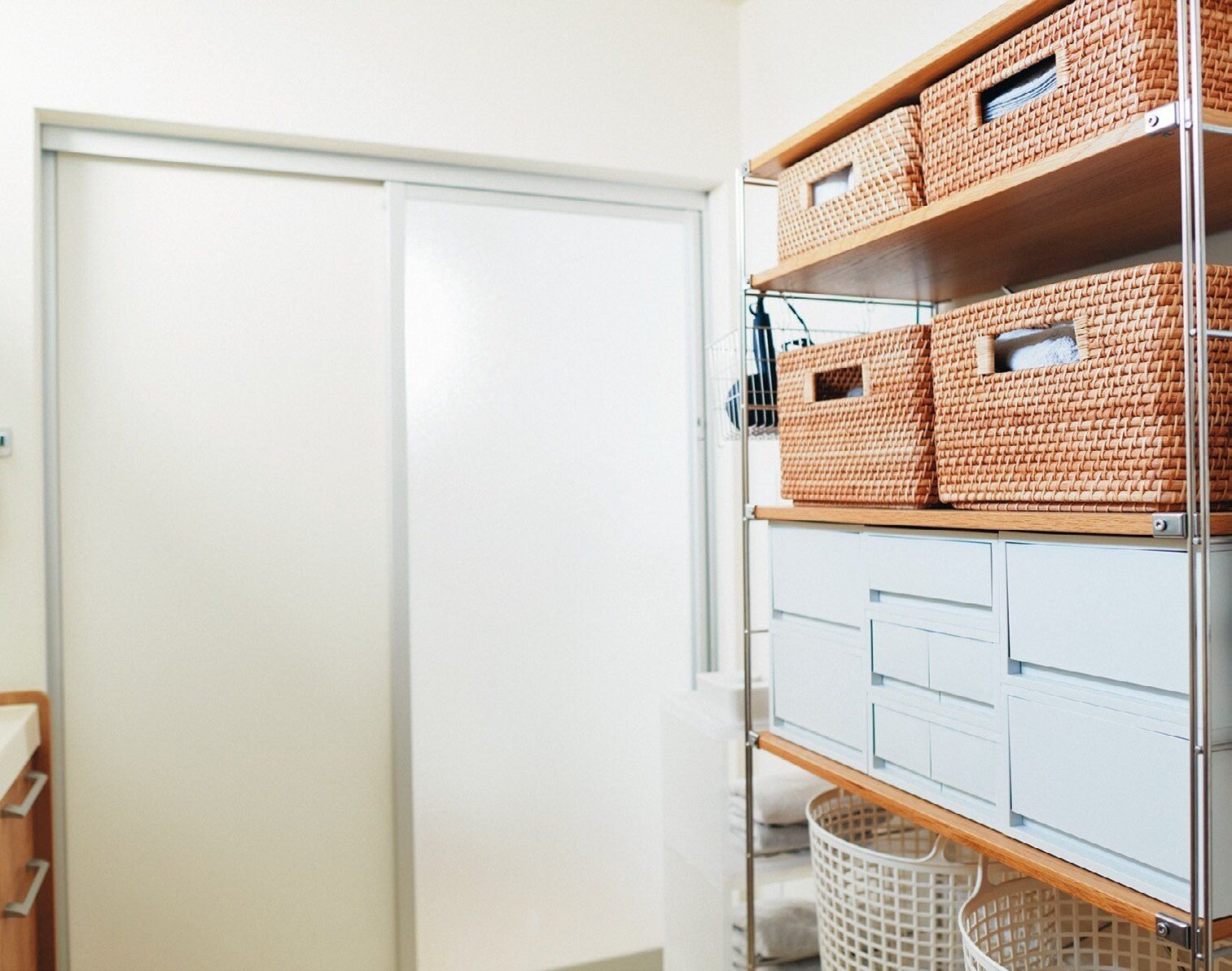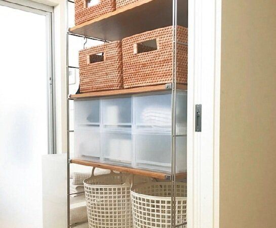 お風呂上がりの着替えを脱衣所に置こうと、別の場所で使っていたケースでお試し。「『やっぱりココにあると使いやすい!』と実感してから、専用の新しいケースを購入しました」。