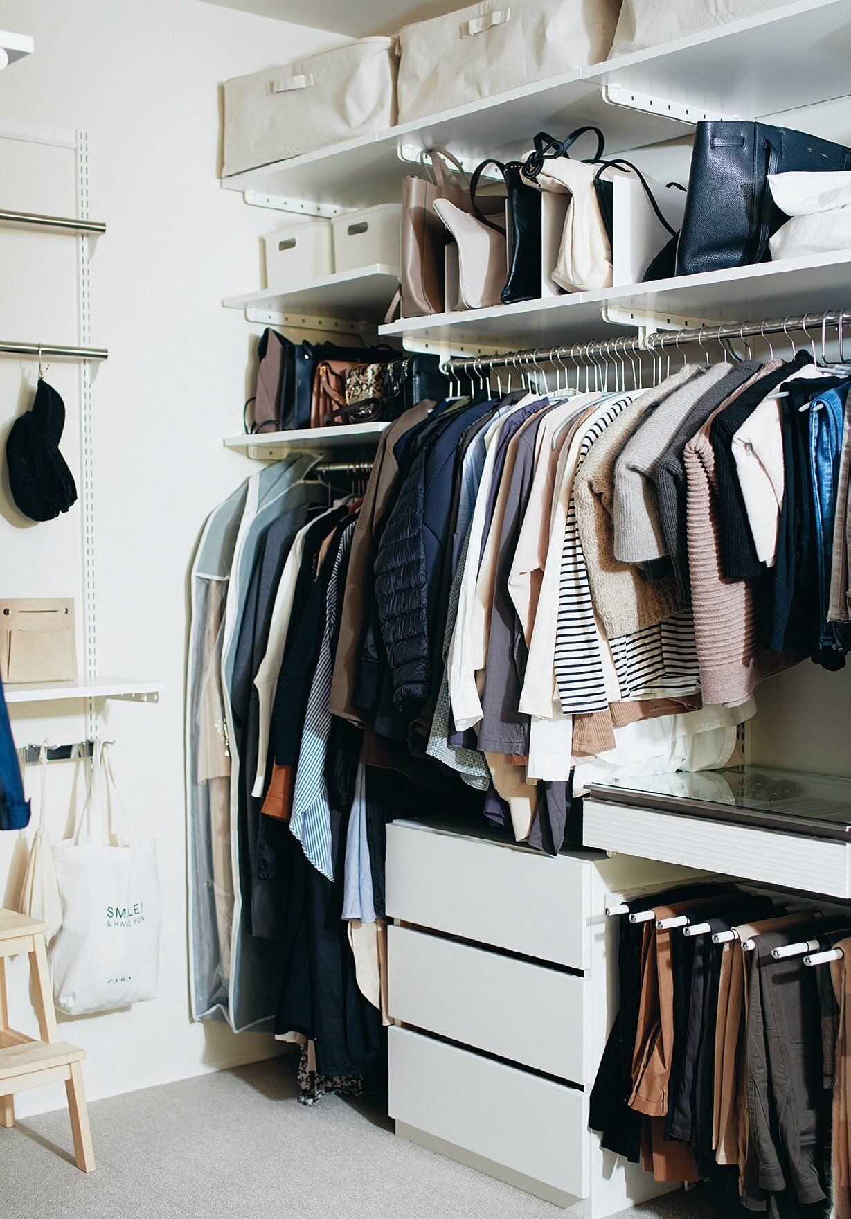 片づけが苦手な人ほどグッズから入るけど、しまう場所が決まっていない物は紙袋などに取りあえず収納。グッズを買うのはそのあと!