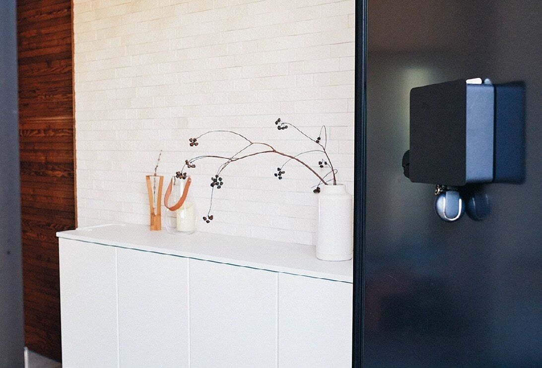 「玄関で靴をはいてから『マスク忘れた!』というとき、室内に戻るの面倒くさいですよね。なので外出時に必要な物はココに置いてます」。出がけにサッと取れるから便利!