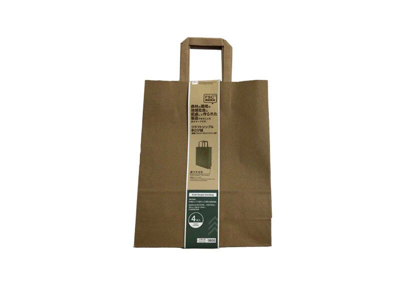 1.持ち手がついている紙袋の場合、ハサミで持ち手をカットします。