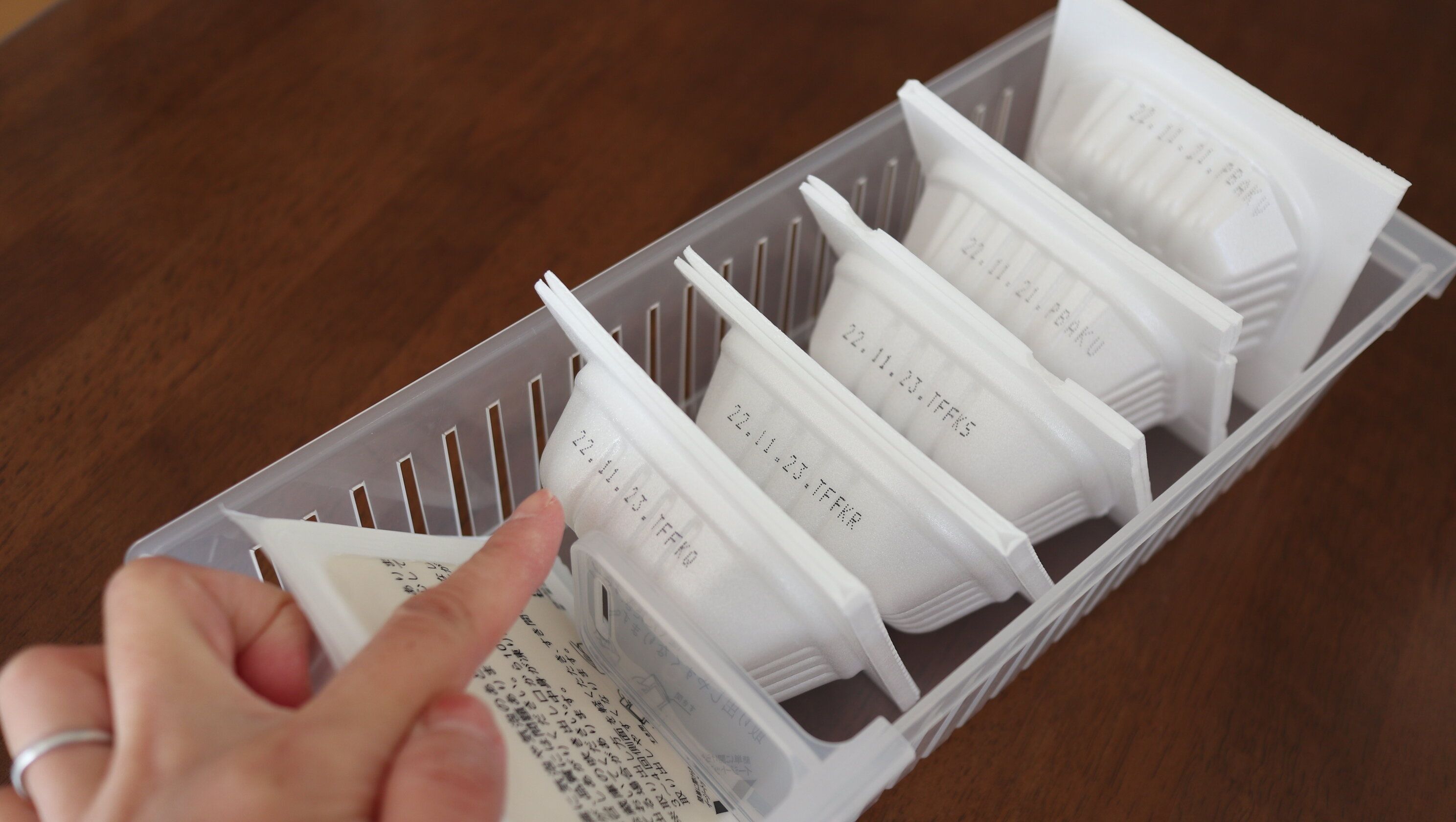 納豆や豆腐、ドリンクなどは使うたびにはがすのではなく、あらかじめ“はがして収納”することで、必要な時にワンアクションで取り出すことができます。