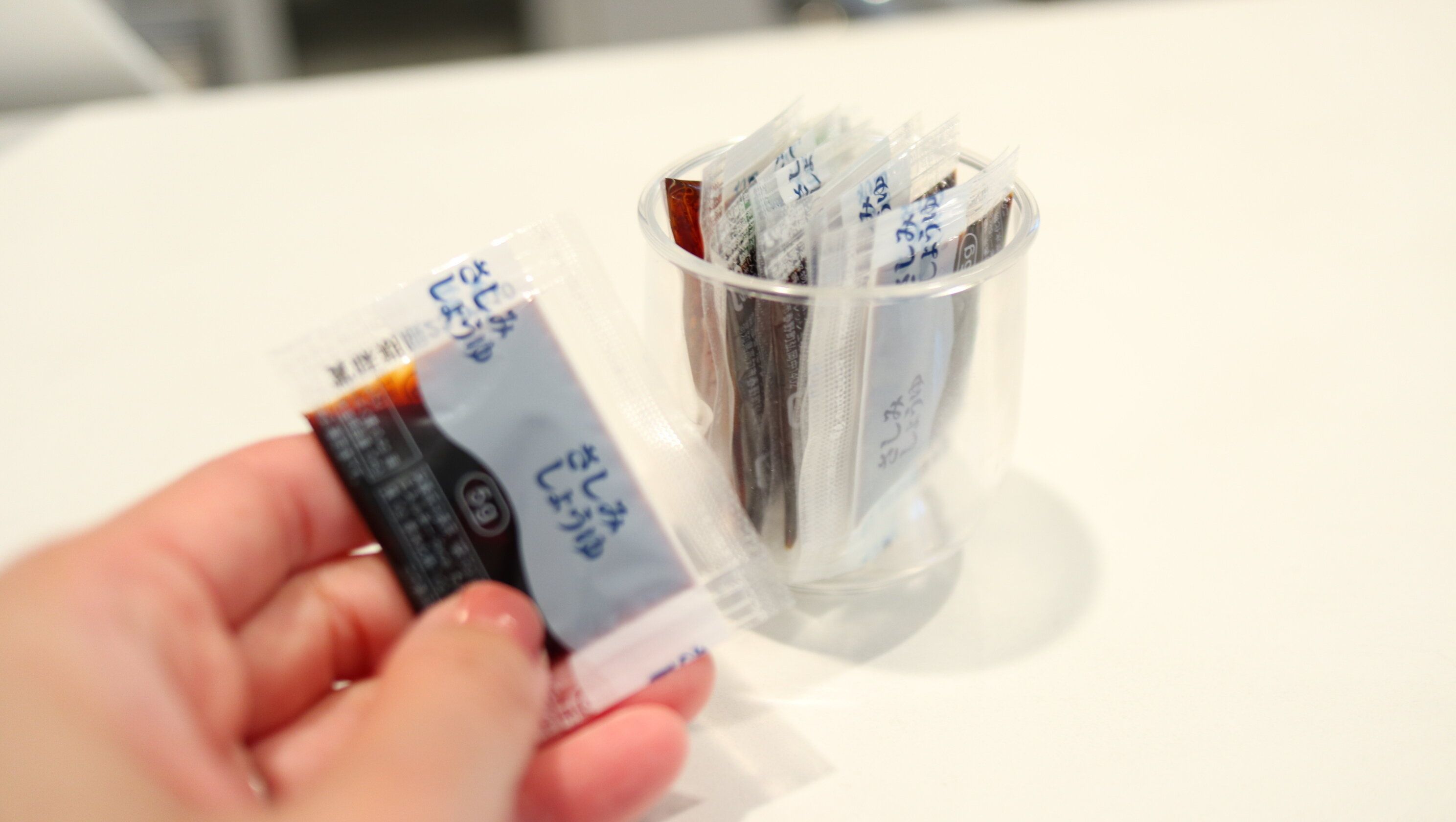 お刺身やお寿司についてきた、お醤油やわさびの小袋。