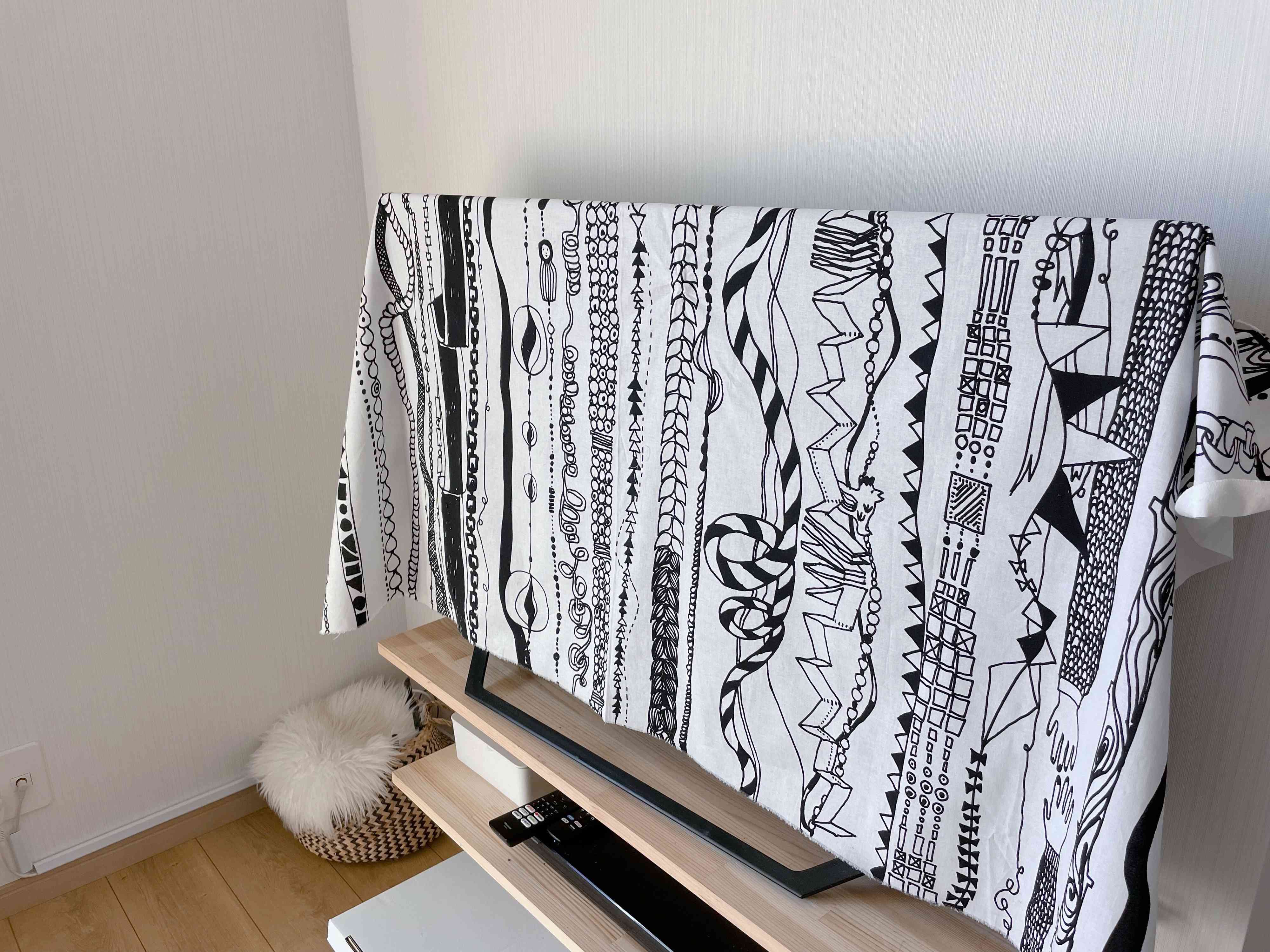 そこで、お気に入りの布を被せて黒の塊の圧迫感を軽減させることに。
