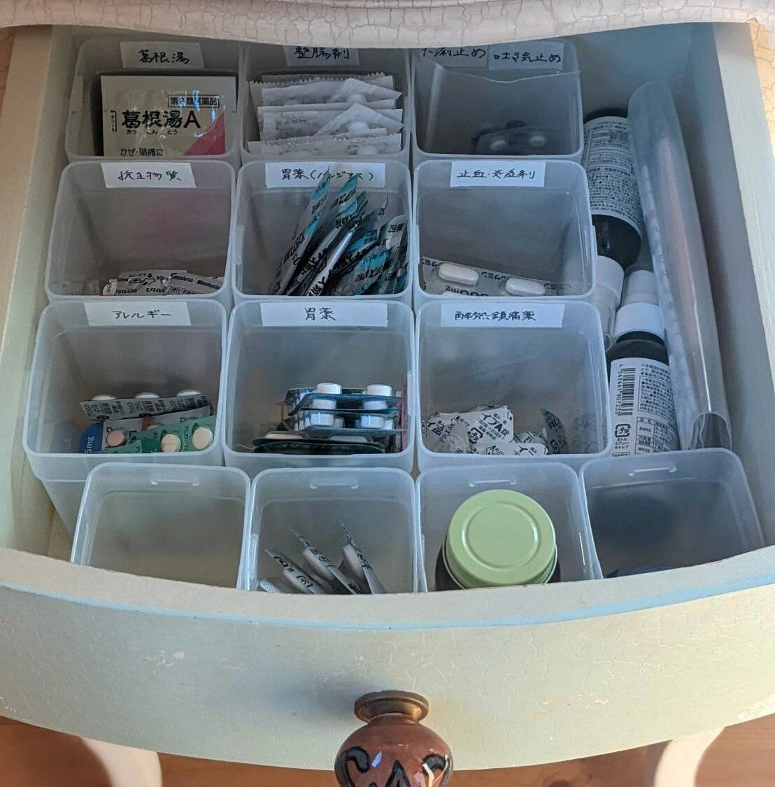 実はこれ、常備薬やゴムやピンなど、細かいモノの収納にもピッタリなんです。同サイズ同士は連結できるので、引き出しの中でズレることもなくストレスフリー。